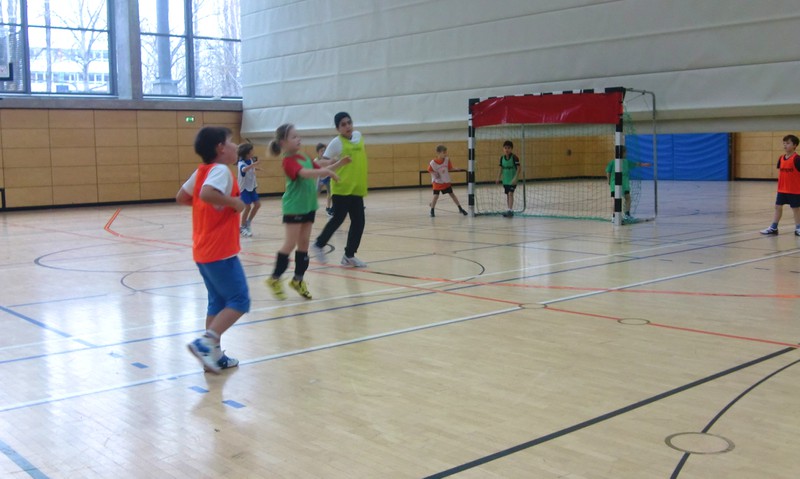 Danach ging es in schnelle Staffelspiele, wo es sehr ausgeglichen zuging. Am Rande wurde für etwas Abwechslung gesorgt, sodass der Mannschaft, die spielfrei hatte, nicht langweilig wurde (z.B. Hütchen abwerfen). Da alle Lust auf viel Handballspielen hatten, ging es dann auch schon mit der Rückrunde weiter: