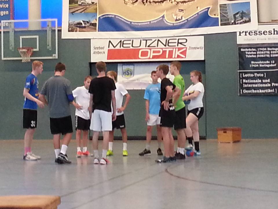 Anschließend wurde zum besseren Kennenlernen ein Altersklassen übergreifendes Beach-Turnier mit 16 Teams gespielt, bevor für die mB und mC noch eine Halleneinheit auf dem Programm stand.