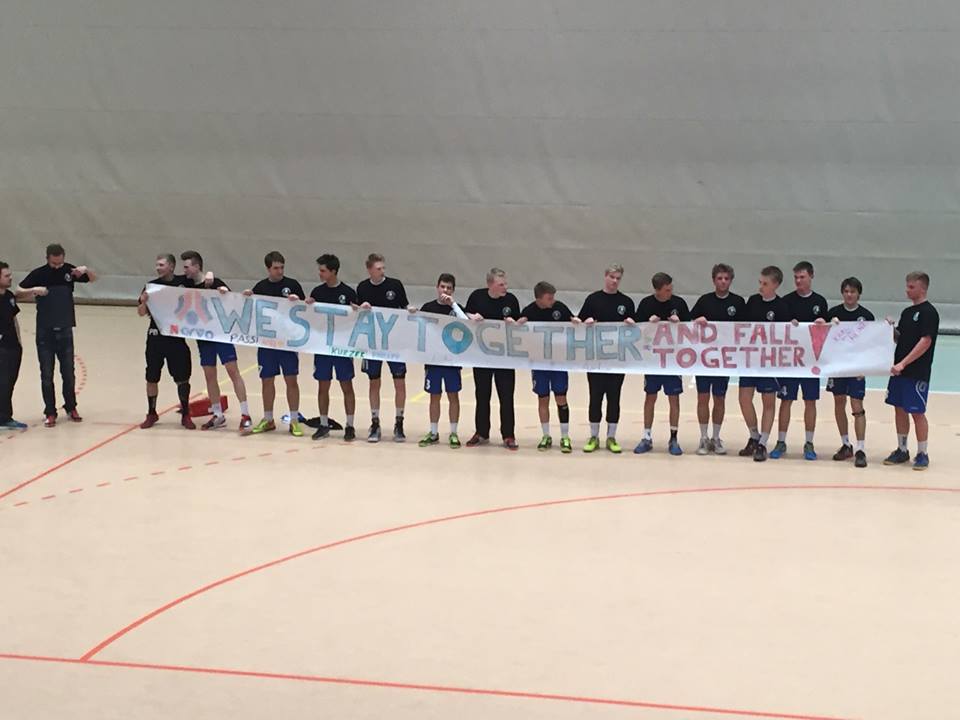 „Vor dieser Mannschaft kann man nur den Hut ziehen. Von Anfang an als Einheit aufgetreten, hat man auch außerhalb des Spielfelds das Gefühl gehabt, dass Freundschaften entstanden sind und insgesamt der Verein von diesen Jungs profitiert. Sie haben sich zu Vorbildern entwickelt und werden diesen Weg weitergehen. Der Traum Jugendbundesliga lebt…“, meint der Urheber des auf dem Spruchband verewigten Zitats, Oliver Ostwald. Fotos hier