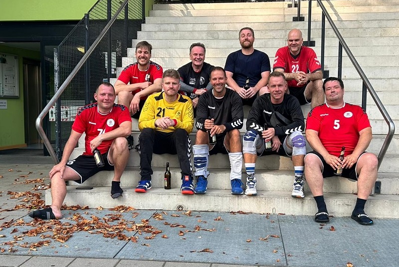 Eigentlich ging es vor ein paar Wochen bei der Einladung der Herren Schmuhl (schon wieder bei den Männern integriert), Ilg (aus Schleswig-Holstein angereist) und Blask (Thüringen) am 30.09.2023 darum, ihnen zum Abrunden der handballerischen Laufbahn wenigstens ein Spiel bei der ü40 zu ermöglichen. Nach diversen Absagen am „langen Wochenende“ war die Teilnahme aber sogar bitter nötig.