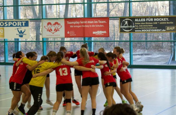 Mit einer an sich beruhigenden 5:13- Führung wurden die Seiten gewechselt, doch beim Handball kann in 30 Minuten ja immer noch viel passieren. Dieses Wissen spiegelte sich auch in einigen Situationen der zweiten Halbzeit wider. Zu oft wurden nun Bälle leichtfertig durch Fang- und Passfehler weggeworfen und das Heimteam somit unnötig gestärkt. Einfache und schnelle Tore von unseren Farben bekamen die mitgereisten Zuschauenden dadurch deutlich weniger zu sehen, immerhin konnte die Chancenverwertung im Gegensatz zur Vorwoche verbessert werden. Somit wurden die Lankwitzerinnen auf Distanz gehalten, auch wenn es vermehrt Situationen ganz im Sinne eines wahren Kellerduells gab. Unterstützt wurde unsere Vertretung dann zusätzlich dadurch, dass die einhergehend mit den schwindenden Kräften erhöhte Anzahl an technischen Fehlern wiederholt nicht geahndet wurde. Als Preussen zum Mittel der 4+2-Deckung griff und zwei Rückraumspielerinnen kurz gedeckt wurden, wurde dann bereits früh bewusst „auf Zeit“ gespielt. Positiv zu vermerken ist, dass im 4:4-Spiel noch einige sehenswerte Einzelaktionen zustande kamen, die hoffentlich auch in den kommenden Wochen wiederholt gezeigt werden. Betrachtet man nur die zweite Halbzeit, wurde diese mit 12:10 verloren, was an diesem Nachmittag dann aber niemanden mehr so wirklich interessierte. Vielmehr war die Erleichterung nach dem Schlusspfiff deutlich zu spüren und es wurde auf die langvermisste Runde Siegerfußball angestimmt.