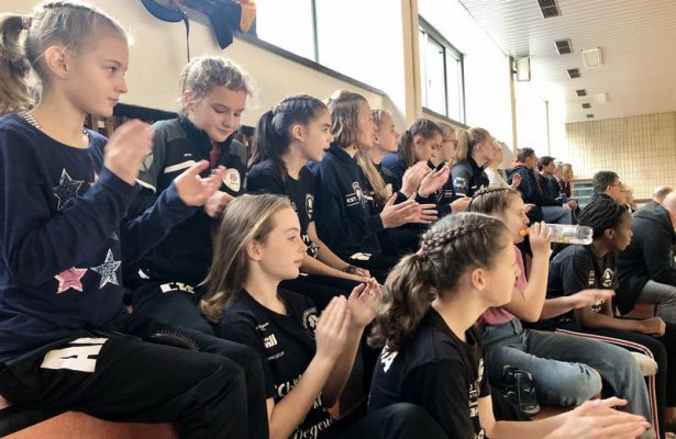 Die Vorzeichen vor dem Spitzenspiel beim TSV Rudow hätten kaum schlechter sein können. Mit der langzeitverletzten Teasse, der anderweitig verhinderten Lia sowie den unter der Woche erkrankten Mona und Celina fehlten nicht nur wichtige Stützen im Kader, die Anzahl der einsatzfähigen Mädels ließ dann doch zu wünschen übrig. Hier konnte Meta noch kurzfristig aushilfsweise dazugewonnen werden – Danke für deinen Einsatz – und das sei vorweg genommen – deine tolle Leistung, vor allem in der Abwehr! Zudem durfte das Gros des Kaders vormittags noch in der C-Jugend wichtige Spielzeit sammeln. Nach einem Mittagessen und tatkräftigen Anfeuern der mD3 ging es also ab nach Rudow.