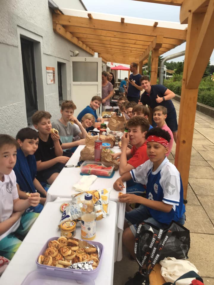 Wie ihr seht, sind die Jungs (völlig unaufgeregt) + Trainer- und Betreuerstab gut in Dessau angekommen. Am Samstag gilt es dann in den Gruppenspielen gegen Wildau, Magdeburg, Leipzig, Neubrandenburg und Saalfeld/Könitz in insgesamt 100 Spielminuten für alle darum, ins sonntägliche Halbfinale einzuziehen.