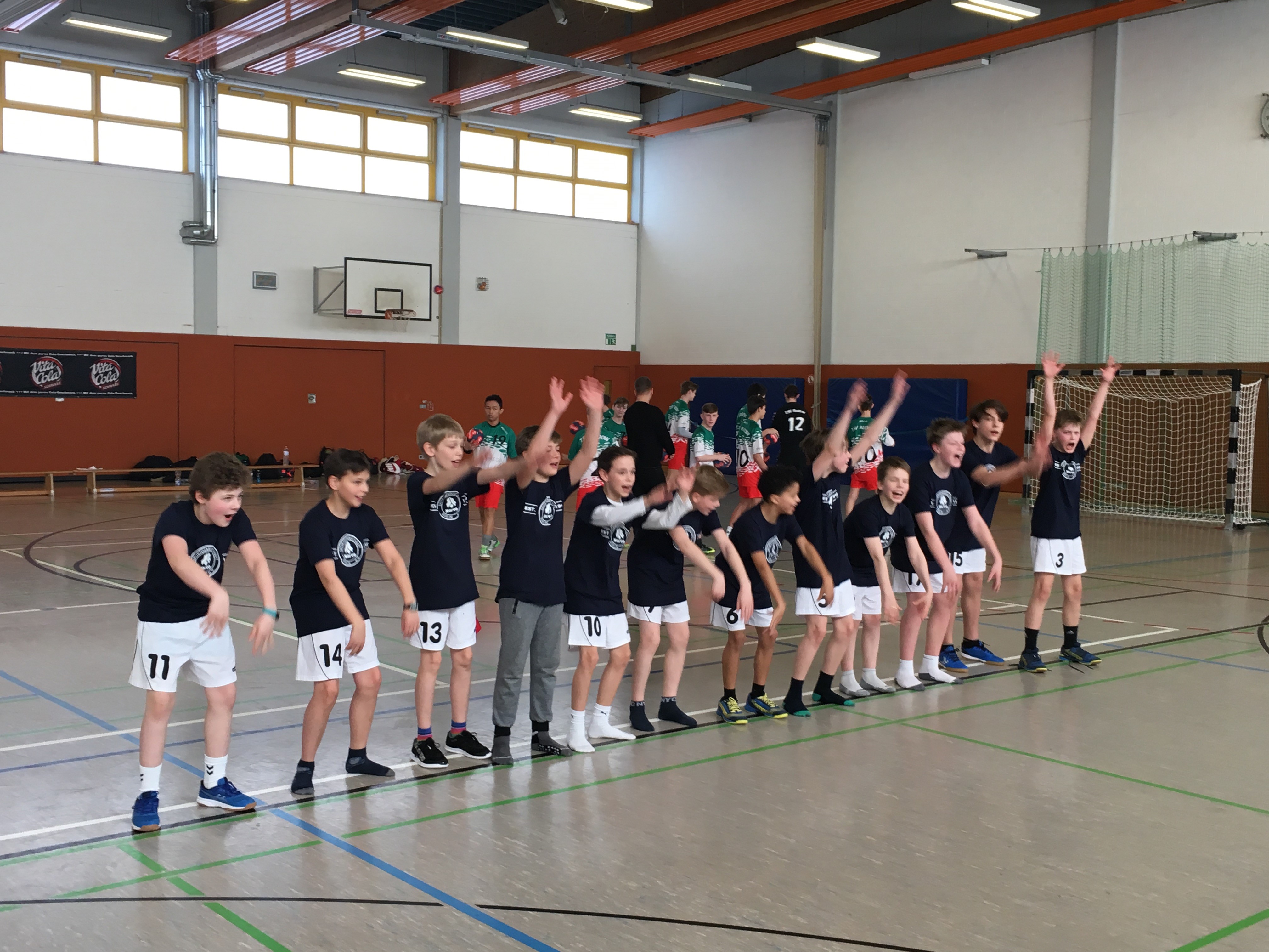 Mit einer klaren Aufgabenverteilung gingen wir ins Spiel und jeder wusste, was zu tun ist. Jedenfalls dachten wir das! Aber irgendwie liefen wir einem Spieler immer nur hinterher, mussten immer wieder aushelfen und unsere Deckung wurde immer wieder auseinander gespielt. Aber im Angriff war auf uns Verlass und so stand es nach 9.00 Minuten 9:9, alle 30 Sekunden ein Tor ;-). Blau Weiß hielt diesen Rhythmus bei und machte 21 Tore in 20 Minuten. Wir konnten da leider nicht mehr mithalten. 21:14 zur Halbzeit. 7 Tore Rückstand, soviel wie noch nie. Aber Kopf hoch, wir glauben an uns, wir glauben immer noch an den Sieg.