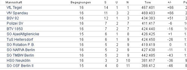 Tabelle der Verbandsliga Männer vor dem 17. Spieltag