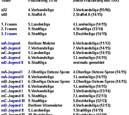 Der Großteil unserer Teams hat die Punktspielsaison 15/16 bereits beendet (Endstände siehe Bild). Für 1.-4. Männer sowie die wE-Jugend geht es beim Tanz in den Mai jedoch hoch her: